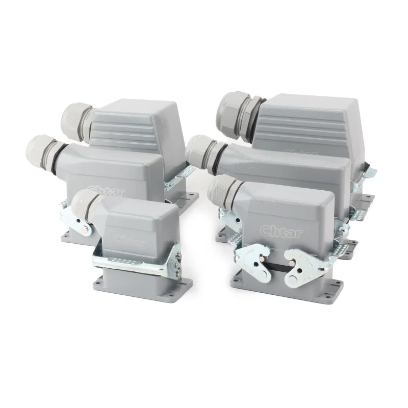 De holdbare 24-benede AG Heavy Duty-stik designet og produceret af CHTAR er velegnet til 24-bens HE, HD, HEE, HDD og andre kraftige stik. Konnektoren er lavet af aluminiumslegering og belagt med RAL7037 gråt pulver. Dens driftsstrøm er 16A, driftsspændingen er 500VAC, driftstemperaturområdet er -40℃ til +125℃ (-40℉ til +257℉), tilslutnings- og frakoblingscyklusserne er 500 gange, og beskyttelsesgraden er IP65.