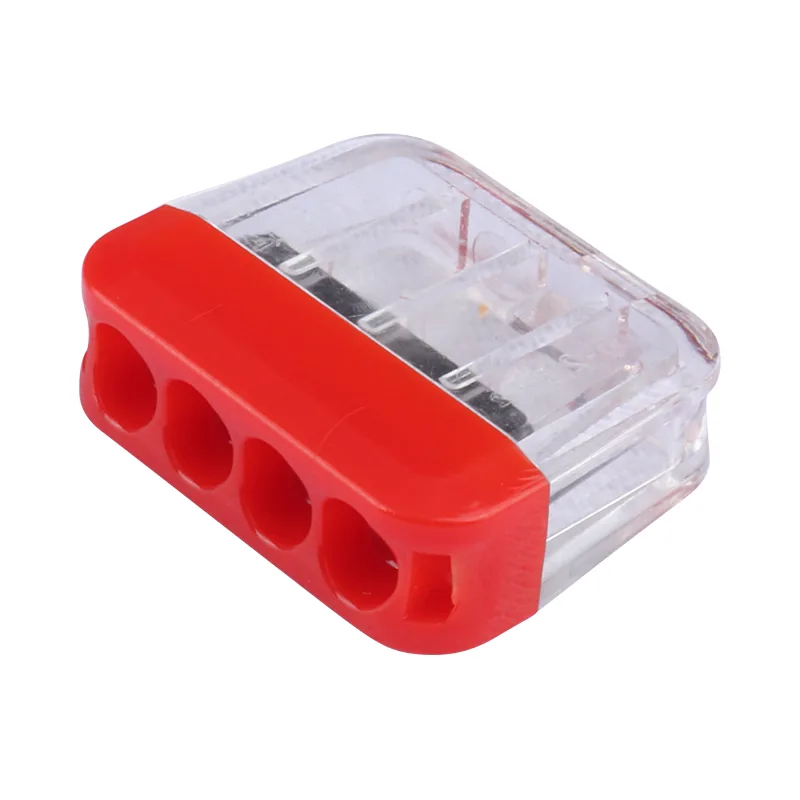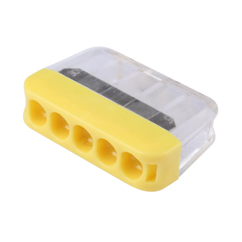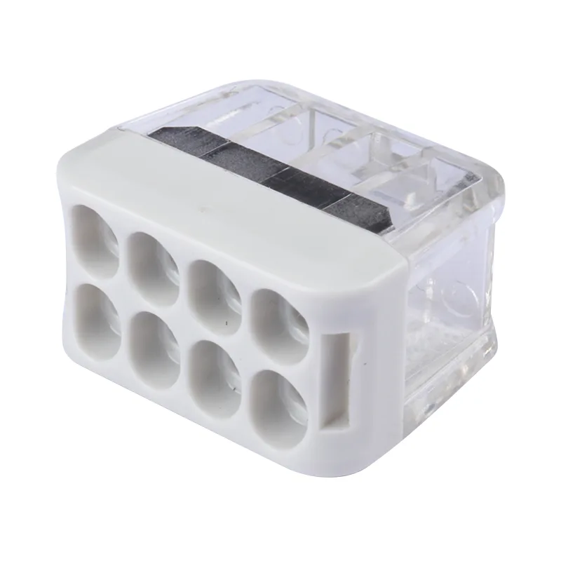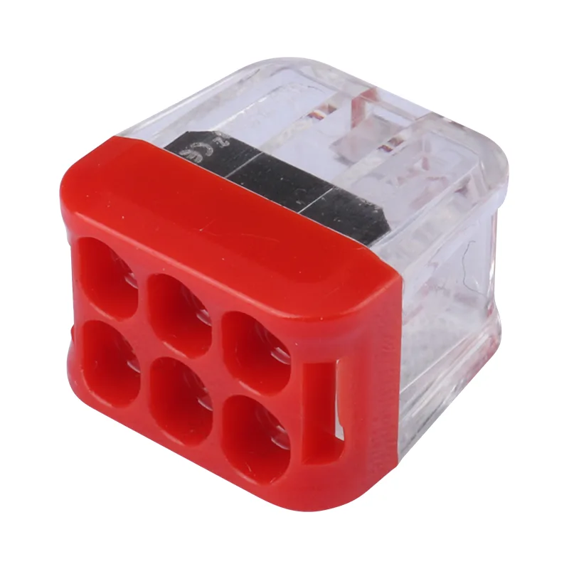 CHTAR 2P 3P 4P 5P 6P 8P Gennemføringslednings-hurtigforbindelser uden håndtag er lavet af UL94 V0-kvalitet PC-husmateriale, Conductive er lavet af T2 kobber med fortinnet og fjeder er lavet af S301. Det kan forbindes med 0,5-2,5 mm2 stive ledninger, det gav forskelligt antal huller til forskellige ledninger, der kan vælges. Den kan godt forbindes med 2 ledninger til 8 ledninger. Vi kan lave forskellige farver eller huse til kundernes valg.