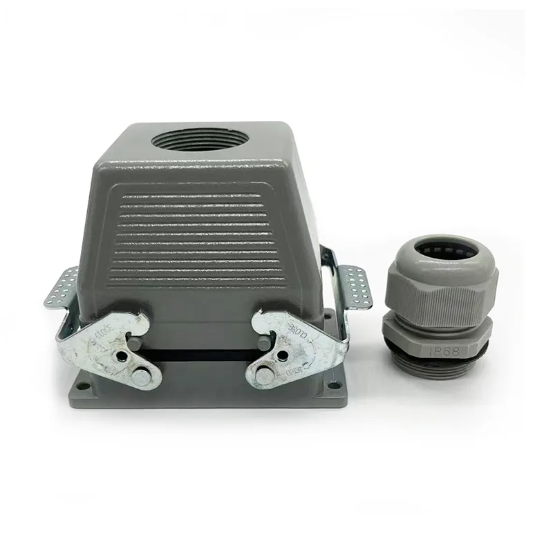 32 Pin TG Heavy Duty Connectors er han-tophusdel. Den skal arbejdes med hanindsatsdele eller hunindsatsdele. Normalt vil det blive fikset med to stykker HE-016-M, men nogle specielle kunders ønske om at samle med to stykker HE-016-F. Det er også hus til HSB-016. IP65 vandtæt funktion gjorde det til det, der kan bruges udendørs. 32 Pin TG Heavy Duty Connectors er matchet med PG29. Hvis kunder har forskellige krav til kabelforskruninger, kan vi acceptere og bestille at producere.
