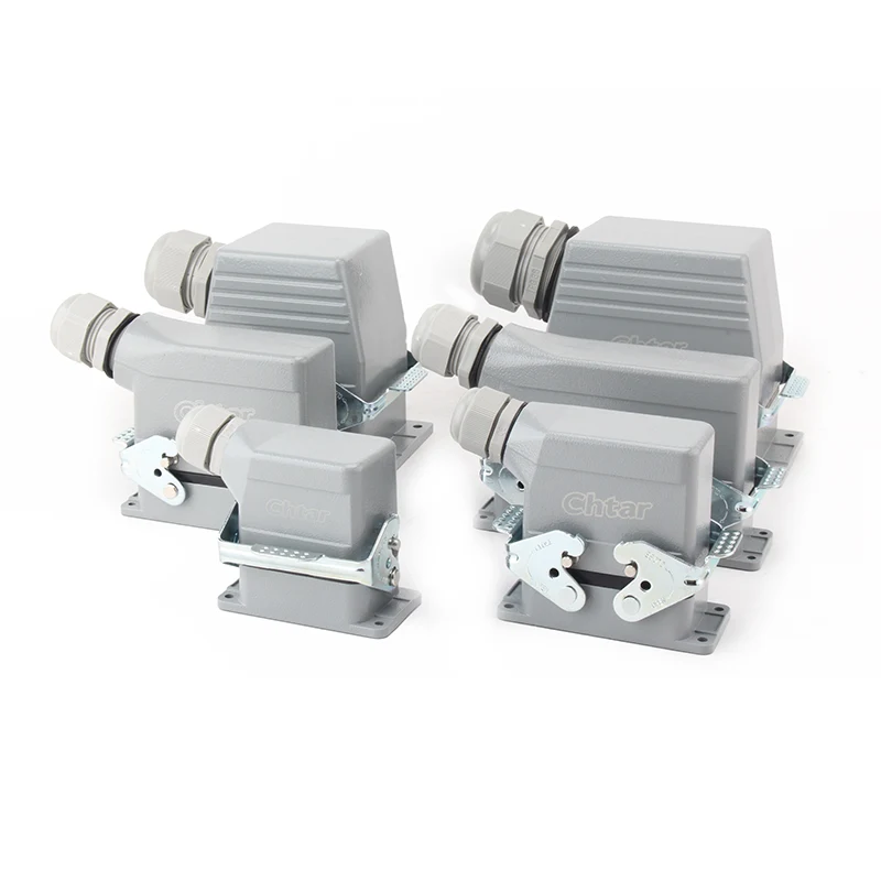 Dette CHTAR holdbare 32-benede TS Heavy Duty-stik kan bruges med to HE-016-M-stykker for at gøre det til et 32-benet stik, eller med to HSB-006-M-stykker for at gøre det til et 16-benet stik. Den kan også bruges sammen med andre kraftige konnektorindsættelseskomponenter. Det er en sideindgangsledning, der bruges sammen med PG29. Hvis du har brug for tilpasning, leverer vi også OEM- og ODM-tjenester! Bare rolig, vi har mange maskinreserver!
