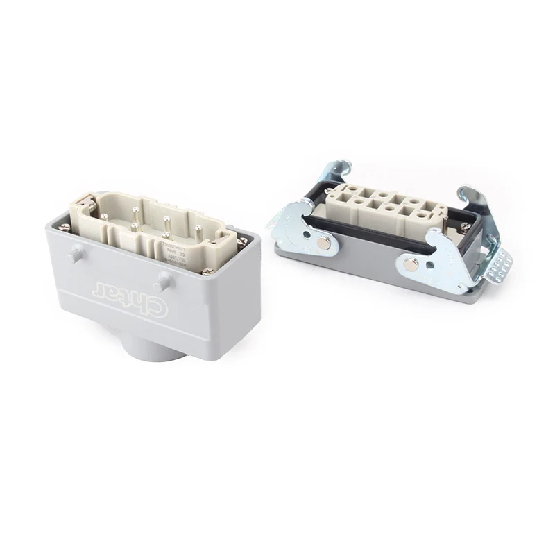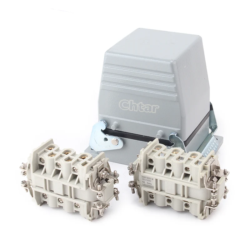 Denne CHTAR højkvalitets 35A 6 Pin Insert Heavy Duty-konnektor matcher 35A H16B-TG- eller H16B-TS-husets kraftige konnektorhus. Den er lavet af højstyrke PC-materiale og samlet med 6 stifter i et H16B aluminiumshus. Det kan også være 12 ben, hvilket gør dem dobbelt så mange som H32B-TG eller H32B-TS.