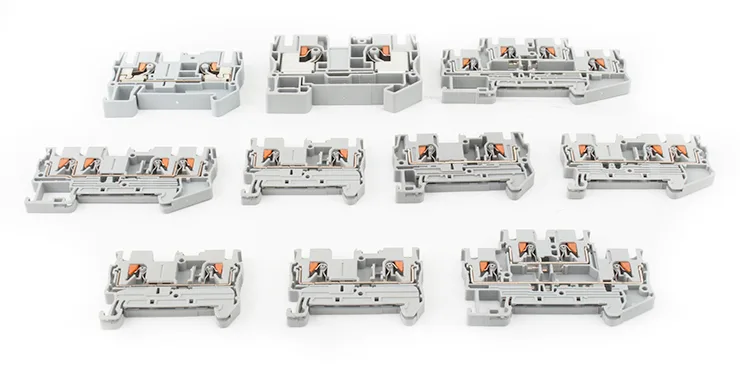 PT-seriens feed-through-din-skinneklemme øger sikkerheden og brugervenligheden, hvilket reducerer installationsfejl. Dens push-til-det-stop-design minimerer menneskelige fejl, mens et taktilt og ofte hørbart klik bekræfter en sikker forbindelse. Mange varianter inkluderer også indbyggede testpunkter til sikker spændingsmåling og kredsløbstest uden at afbryde ledninger.