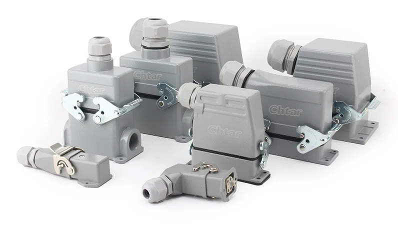 CHTARkan levere hele sortimentet af kraftige konnektorer. Der er huse, der matcher HA, HE, HD, HEE og HDD, og så videre serie kraftige konnektorer. De arbejder også med forskellige ben, såsom 3, 4, 5, 6, 10, 16, 24, 32 og 48 og så videre. Fabrikken kan levere forskellige ledningsretningsforbindelser.