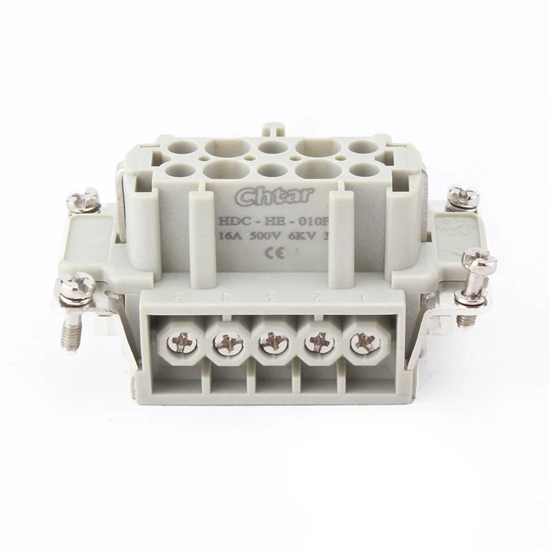 CHTARs holdbare M/F 10 Pin Insert Heavy Duty Connector bruges sammen med H10B-huset til det kraftige stik. Den har 10 ben og er forbundet med 10 ledninger. De er lavet af højstyrke PC og har messing sølvbelagte stifter indeni. Vi ser frem til at blive din betroede langsigtede partner i Kina.