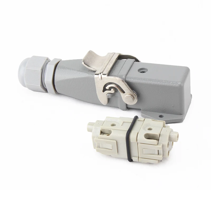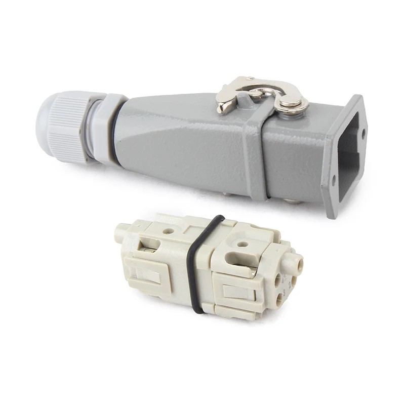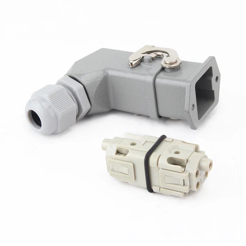 Det er arbejdet med 10A H3A-MTG Housing heavy duty stik. M HA 4 Pin Insert Heavy Duty Connector er lavet af stærkt PC materiale og messing forsølvet .Vores stifter er belagt med sølv, meget god kvalitet og meget bedre elektrisk ledningsevne. Den er samlet med tætningsgummi for at gøre den bedre vandtæt.