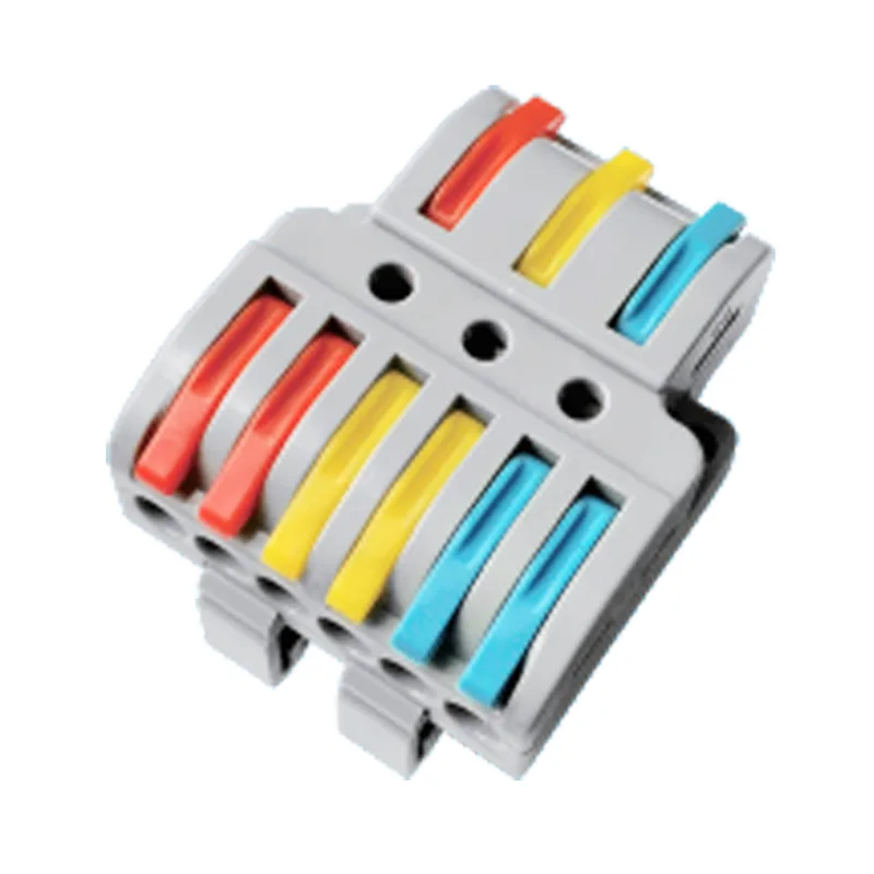 4 mm2Multi-In Multi-Out Din Rail Type Splejsning Wire Quick Connectors bruges i vid udstrækning til industriområde og belysningssystem ledninger forbindelse. Hurtige ledningskonnektorer er et effektivt produkt, vedligeholdelses din skinnesamlingsskal understøtter det godt bearbejdet i det elektriske panel, frit kryds designet til at hjælpe elektrikere med at spare betydelig installationstid på stedet.