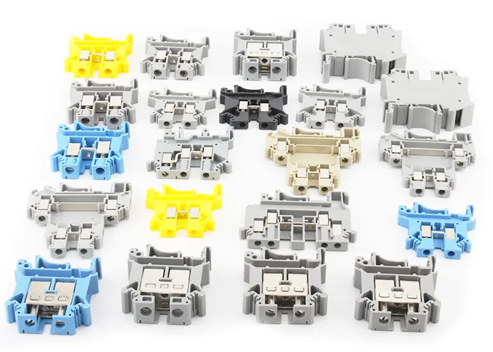 Vores fabrik tilbyder OEM-skalfarvetilpasning til forskellige positioner og funktioner. De nyeste klemrækker med skrue-din-skinne fås i standardfarver som grå, gul, rød, sort, grøn, brun og orange for at passe til forskellige markedsbehov.